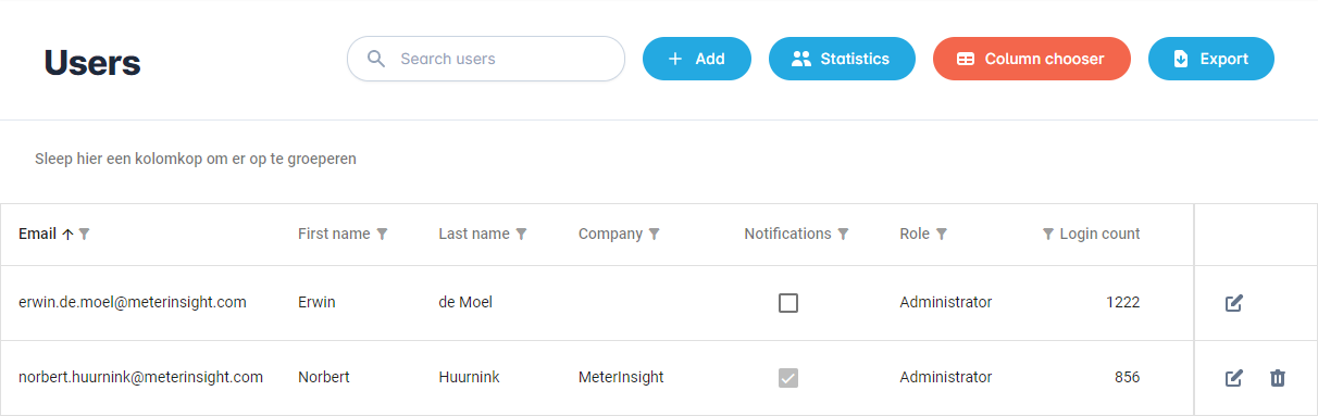 With the "Statistics" button you can view the user activity within your tenant.