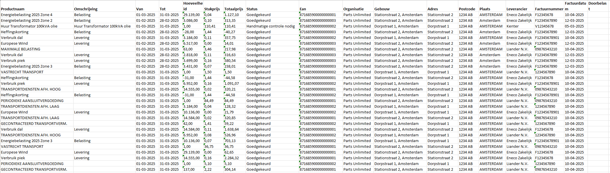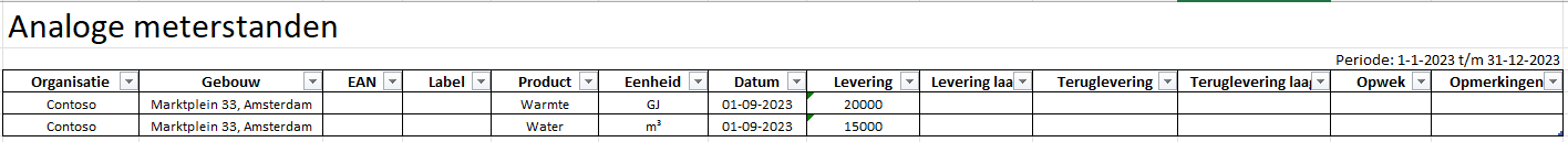 | Formaat | Excel of CSV | Het formaat waarin de meetdata wordt aangeleverd. Excel zal een .xlsx bestand genereren en CSV een .csv bestand. Voor grote hoeveelheden data kan het beste CSV worden gebruikt, omdat dit bestandstype kleiner is |